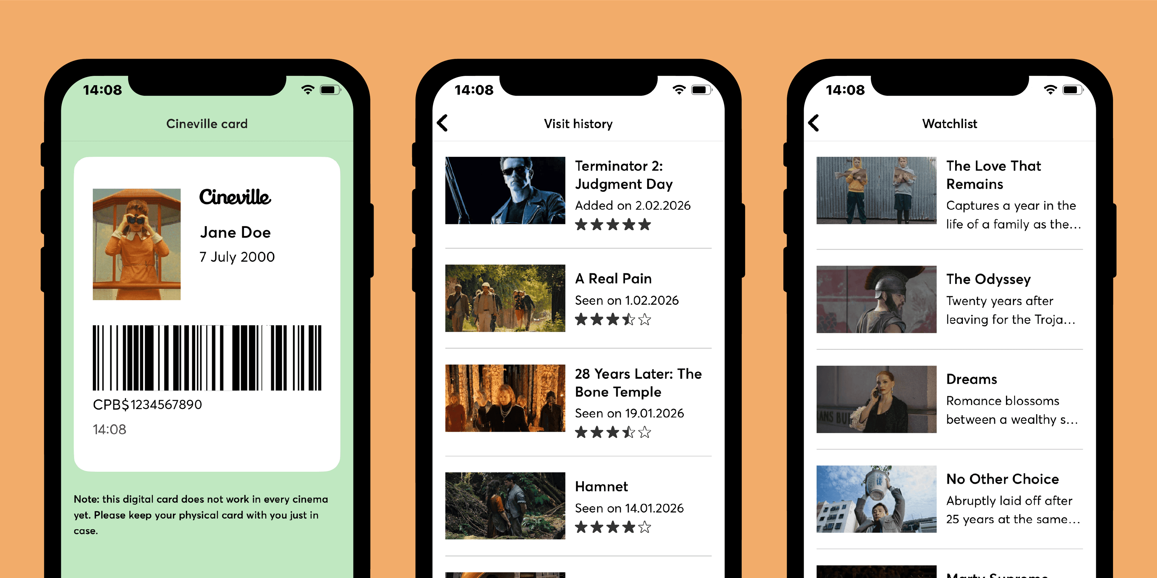 A digital Pass: forgot your wallet? No problem. Log in to the Cineville app with your account and have your digital Pass scanned at your favorite cinemas.