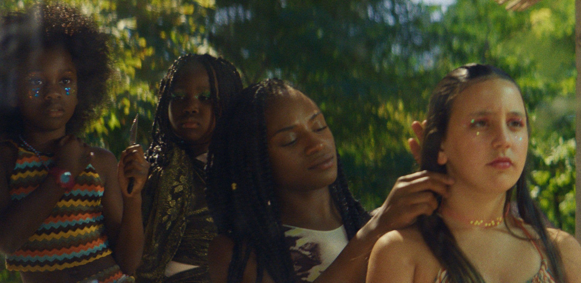 Tandis que les héroïnes basculent tout doucement dans l’âge adulte, on voit les enfants qu’elles accompagnent singer leurs aîné·es avec un amateurisme attachant. Petits chamboulements et grandes émotions parfois indéchiffrables ou inexprimables sont le lot de tous·tes. On se vanne, on pisse au lit, on prend un certain plaisir aux bêtises. On pleure parfois à chaudes larmes aussi. Le film effleure en effet certains sujets difficiles comme les mères abandonnantes, l’emprise, le consentement et l’amour.